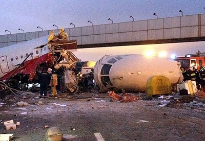وسقطت الطائرة بعد تجاوزها المدرج قرب طريق "كييفسكوي" السريع الذي يؤدي إلى المطار والذي كان مكتظاً بالسيارات في الاتجاهين.