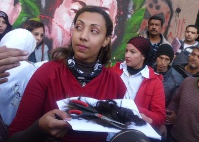 قامت عدد من المتظاهرات بقص شعورهن اعتراضا على تهميش المرأة في الدستور - انترنت