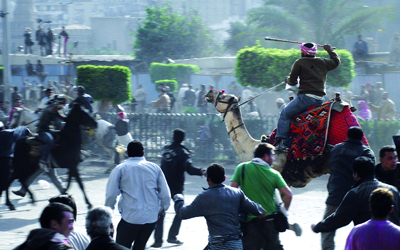 صورة أرشيفية لحادثة الاعتداء على المتظاهرين المعروفة بـ «موقعة الجمل». أ.ب