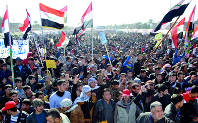 ردّ رئيس مجلس النواب العراقي، أسامة النجيفي، على رئيس الحكومة، نوري المالكي، الذي اعتبر في تصريح، أمس، أن شرعية رئيس البرلمان في بلاده قد سقطت، وذلك على خلفية الخلاف على إلغاء قانونَي «المساءلة والعدالة» و«مكافحة الإرهاب»، المثيرين للجدل، داعياً المالكي إلى «العودة عن غيه». فيما أعلنت الكتلة العراقية، بزعامة إياد علاوي، دعمها الكامل لمطالب الشعب العراقي، وتأييدها لحق التظاهر السلمي، وقتل 20 شخصاً على الأقل واصيب نحو 47 آخرين بجروح في انفجار سيارة مفخخة استهدف زواراً في ناحية المسيب جنوب بغداد، حسبما افادت مصادر امنية وطبية عراقية.