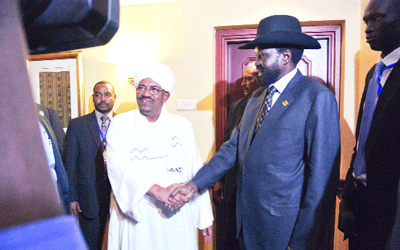 عقد الرئيس السوداني عمر البشير ونظيره السوداني الجنوبي سلفا كير في اديس أبابا التي وصلا إليها أمس، قمة تهدف الى تفعيل الاتفاقات الامنية والاقتصادية التي وقعا عليها في سبتمبر، والتي لاتزال حبراً على ورق، حيث طالب الأمين العام للأمم المتحدة بان كي مون الرئيسين بحل كل المسائل العالقة بين البلدين.