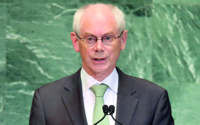 جدّد الاتحاد الأوروبي، أمس، مطالبته الرئيس السوري بشار الأسد بالتنحّي، داعياً الائتلاف الوطني السوري المعارض إلى التعاون مع مبعوث الأمم المتحدة وجامعة الدول العربية إلى سورية الأخضر الإبراهيمي. ودعا رئيس مجلس الاتحاد الأوروبي هيرمان فان رومبوي، بعد لقائه الأمين العام لجامعة الدول العربية نبيل العربي، إلى «وقف المجزرة في سورية، حيث قالت الأمم المتحدة إن أكثر من 60 ألف شخص قتلوا». وأضاف «هذا مرعب وغير مقبول، وأجدد موقف الاتحاد الأوروبي بأن على الرئيس الأسد التنحّي، في الوقت الذي تُبذل فيه جهود لتسهيل انتقال ديمقراطي وشامل». وجدّد رومبوي أيضاً دعم الاتحاد لمهمة الإبراهيمي، في العثور على حل سياسي للأزمة.