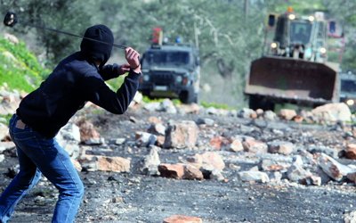 فلسطيني خلال مواجهة مع قوات الاحتلال بالقرب من نابلس. أ.ف.ب