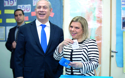 وأدلى نتنياهو بصوته باكراً، صباح أمس، برفقة زوجته سارة وابنيهما، في مكتب تصويت في ريحافيا، الحي الراقي في وسط القدس، حيث مكان اقامته الرسمي.