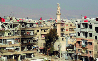 الدمار والخراب يبدوان واضحين في مدينة داريا نتيجة القصف والاشتباكات. أ.ف.ب