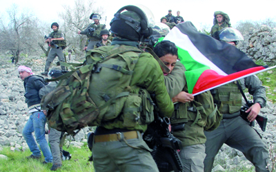 طرد الجيش الإسرائيلي بالقوة مئات الفلسطينيين لدى اعتصامهم، أمس، داخل خيام في منطقة مهددة بالمصادرة لمصلحة البناء الاستيطاني جنوب نابلس بالضفة الغربية.