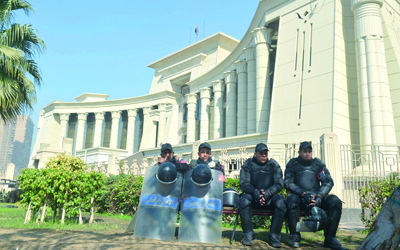 قررت المحكمة الدستورية العليا في مصر، أمس، مدّ أجل النطق بالحكم في دعويين بعدم دستورية قانون معايير انتخاب أعضاء الجمعية التأسيسية، التي أعدت الدستور الجديد للبلاد، إلى جلسة الثالث من مارس المقبل، وفيما ألقى حمادة صابر، الذي تم سحله والاعتداء عليه على يد الشرطة خلال مظاهرات عنيفة أمام قصر الرئاسة، باللوم في الواقعة على متظاهرين، هدد قيادي سلفي بالنزول إلى الشارع للقبض على أصحاب الفضائيات التي اتهمها بالترويج للعنف، بينما ذكرت تقارير إخبارية رسمية أن مجهولين حاولوا، الليلة قبل الماضية، اقتلاع باب قصر «الاتحادية» الرئاسي، خلال اشتباكات.