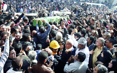 تشييع ناشطين قتل أحدهما تعذيباً والآخر باشتباكات قصر الاتحادية الجمعة الماضية. رويترز