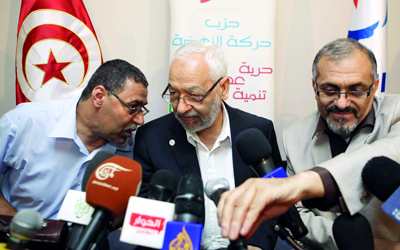 من جانبها، دعت النهضة الى تظاهرة كبيرة، اليوم، في تونس، من اجل الدفاع عن «شرعيتها» في حكم البلاد، في شعار يهدف صراحة الى الطعن في رئيس الوزراء، وهو ايضا الامين العام للحركة، الرجل المعتدل الذي يعارض قيادته التي يطغى عليها المتشددون.