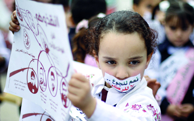 طفلة فلسطينية خلال مشاركتها في تظاهرة احتجاج تضامنية مع الأسرى في مدينة غزة. أ.ف.ب