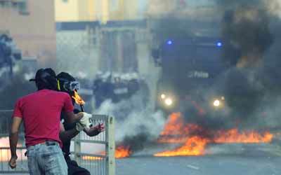 محتجون يشتبكون مع الأمن البحريني قرب المنامة. إي.بي.ايه