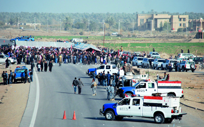 واتهم بيان رئاسة الإقليم المالكي، الذي يحكم البلاد منذ 2006، بـ«الانفراد والتسلط والإقصاء»، وبمواصلة «انتاج الأزمات، وتدويرها وتصعيد التوتر»، ووضع البلاد «في مفترق طرق من شأنها تمزيق وحدتها وتشتيت جهود قواها وحماية ما تحقق من انجازات نتيجة تضافرها». من ناحية أخرى ، برّرت قيادة عمليات الأنبار، أمس، الانسحاب من ساحة الاعتصام، بـ«وجود معلومات حول تهديد إرهابي في هذه الساحات، ودخول مسلّحين ملثمين هتفوا باسم تنظيم القاعدة».