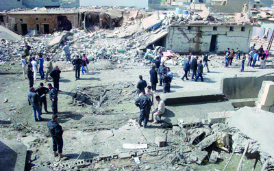آثار الدمار الذي استهدف مركزاً للشرطة أمس في منطقة الدبس. أ.ف.ب