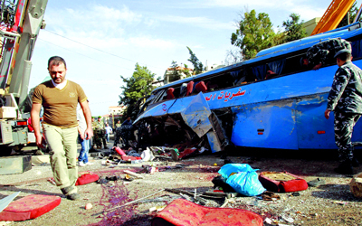 قتل تسعة أشخاص وأصيب اكثر من 20 آخرين بجروح فجر، أمس، في حادث اصطدام حافلة ضخمة تقل لاجئين سوريين قادمة من سورية في بلدة الكحالة شرق بيروت. وقال مصدر أمني إن «تسعة اشخاص قتلوا وأصيب أكثر من 20 بجروح في انقلاب حافلة بعد اصطدامها بسور صغير يفصل بين مسلكي طريق دمشق الدولي في بلدة الكحالة، ولم يعرف سبب الحادث بعد»، موضحاً ان ركاب الحافلة من اللاجئين السوريين القادمين من سورية.