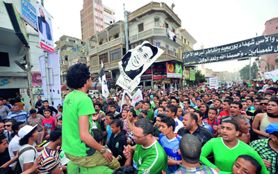 تظاهر آلاف المصريين، أمس، أمام النصب التذكاري للجندي المجهول بشمال القاهرة، مطالبين في «مليونية الفرصة الأخيرة»، بإسقاط النظام، وتسليم القوات المسلحة مسؤولية إدارة شؤون مصر، وفي الوقت الذي اعتبر فيه الرئيس محمد مرسي، أن العملية السياسية في مصر حالياً هي «العبور الثالث»، أحرق ظرفاء بورسعيد ، البخور أمام محال تجارية بالمدينة، خشية تعرّضهم للحسد، بعد أن وصفهم مرسي بأنهم «كسِّيبة وأصحاب رؤوس أموال».