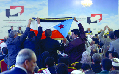 جنوبيون يرفعون علم الجنوب ما قبل الوحدة في مؤتمر الحوار الوطني. إي.بي.إيه