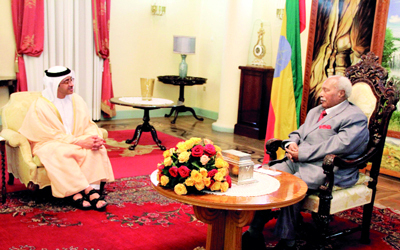ونقل سمو وزير الخارجية الذي يزور إثيوبيا حالياً في ختام جولة لعدد من الدول الإفريقية شملت انغولا وزامبيا، تحيات صاحب السمو الشيخ خليفة بن زايد آل نهيان، رئيس الدولة، إلى الرئيس الإثيوبي، وحرص سموه على نمو العلاقات وتطويرها بين دولة الإمارات وإثيوبيا بصورة خاصة وبينها ودول القارة الإفريقية بصورة عامة.