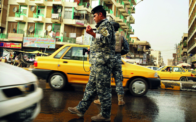 جنود الجيش العراقي في إحدى نقاط التفتيش بالعاصمة بغداد. غيتي
