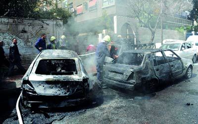 آثار الدمار نتيجة سقوط قذيفة هاون في حي البرامكة بدمشق. أ.ف.ب