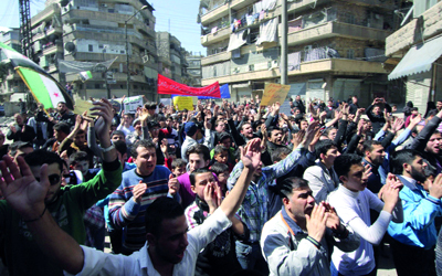 تظاهرة ضد الأسد في منطقة بستان القصر في حلب. رويترز