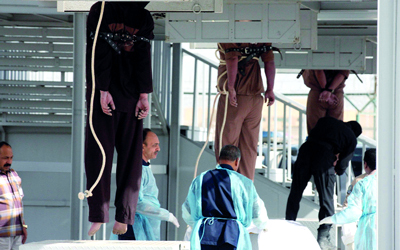 صورة للمعدومين الـ 3 بعد تنفيذ الحكم. أ.ف.ب