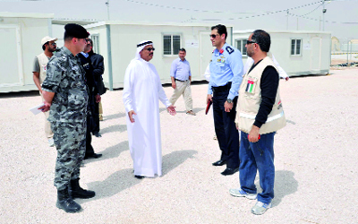 تفقد سفير الدولة لدى الأردن عبدالله ناصر سلطان العامري، المخيم الإماراتي الأردني «مريجيب الفهود» للوقوف على التحضيرات النهائية لاستقبال اللاجئين السوريين به في الـ 10 من أبريل الجاري. واطلع العامري على آخر التجهيزات في المخيم والاطمئنان على سير العمل من حيث جاهزيته لاستقبال أول فوج من اللاجئين السوريين حيث تفقد مرافق السكن والمستودعات ومناطق الترفيه والمطابخ والمدارس والمركز الطبي والمركز الاعلامي. وأثنى العامري على جميع الجهود التي بذلها الفريق الاماراتي في العمل على سرعة الانجاز في فترة زمنية قصيرة، وثمن دور الامن العام وقوات الدرك الاردنية والمسؤولين في بلدية الزرقاء، بالتعاون مع الجانب الاماراتي في انجاز العمل بالمخيم لاستقبال اللاجئين. من جهته، قال قائد فريق الاغاثة الإماراتي ماجد سلطان بن سليمان، إن المخيم يضم 770 كرفانا ومستودعات ومطابخ ومدرستين للذكور والإناث ومسجداً وأسواقاً مفتوحة ومغلقة ووحدات صحية متكاملة تنقسم إلى عيادات متخصصة عدة منها العيادة العامة والطوارئ وعيادة النساء والأطفال والمختبر والعيادة الطبيعية والأشعة. كما زود المخيم بمحطة لمعالجة المياه بطاقة تشغيلية 500 متر مكعب يوميا وخزانات للمياه بسعة 600 متر مكعب يومياً، وسخانات شمسية ونظام ري متطور وصالات جلوس عائلية وملاعب.