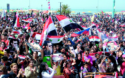 تظاهرة مؤيدة للأسد في طرطوس وزعتها الوكالة السورية. إي.بي.إيه