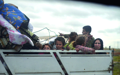 عائلة سورية تفر من حلب هرباً من القصف العنيف الذي تنفذه القوات النظامية على أحياء المدينة. أ.ف.ب