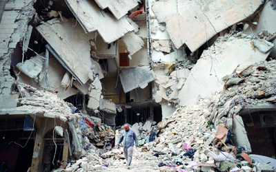 سوري وسط الدمار في مدينة حلب نتيجة قصف القوات النظامية. أ.ف.ب