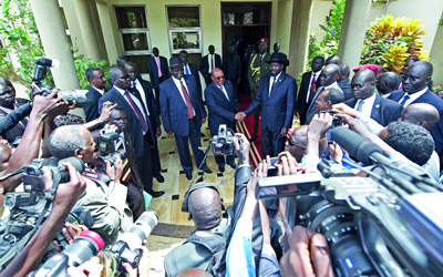 وكان البشير قد وصل إلى عاصمة جنوب السودان امس، حيث كان في استقباله نظيره سلفا كير، الذي قدم إليه أعضاء حكومته، وبعد عزف النشيدين الوطنيين توجه الرئيسان إلى القصر الرئاسي، لإجراء محادثات لم يكشف مضمونها.