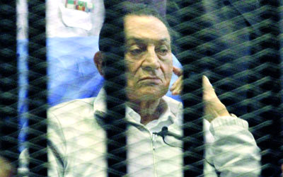 مبارك كما ظهر أمس في قفص المحاكمة. إي.بي.إيه