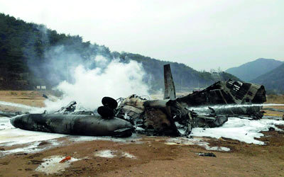 حطام المروحية الأميركية التي تحطمت قرب الحدود بين الكوريتين. أ.ف.ب