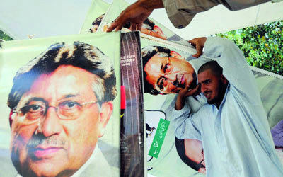 أنصار مشرف جهزوا الملصقات الانتخابية للجنرال. أ.ف.ب