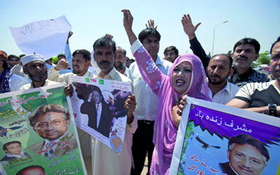 تظاهرة لأنصار مشرف تندد بموقف القضاء منه. أ.ب
