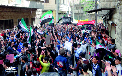 تظاهرة تطالب بإسقاط نظام الأسد في مدينة حلب شمال سورية. أ.ب