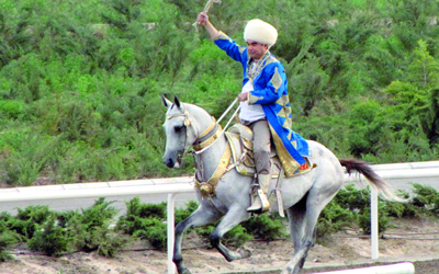 الرئيس التركماني يسقط عن صهوة حصانه