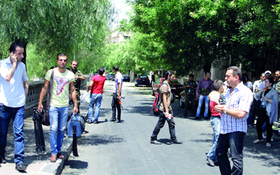 صحافيون في منطقة الروضة بعد حادث التفجير الشهير الذي استهدف خلية الأزمة. أ.ف.ب ـ أرشيفية