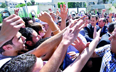وعرضت صفحة الرئاسة السورية على موقع «فيس بوك» للتواصل الاجتماعي صورة للأسد خلال الاحتفال، بدا فيها محاطاً بحراسه الشخصيين وسط جمع من الشبان والشابات الذين يمدون أيديهم لمصافحته.