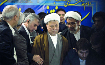 رفسنجاني لدى وصوله لجنة الانتخابات بوزارة الداخلية. أ.ف.ب