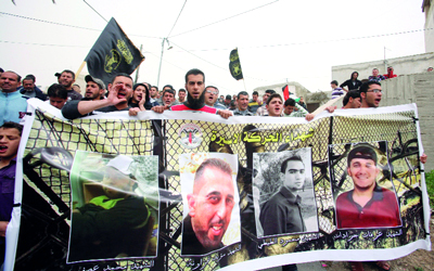 فلسطينيون يتظاهرون مطالبين بإطلاق الأسرى. أ.ف.ب
