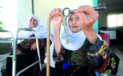 عجوز فلسطينية (102 عام) في العراق ترفع مفتاح بيتها بالخليل في ذكرى النكبة. أ.ف.ب