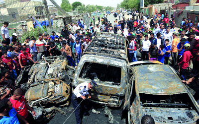 آثار التفجير الذي وقع في مدينة الصدر أمس. أ.ب