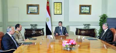 مرسي خلال اجتماعه بوزراء الجيش والداخلية والمخابرات. رويترز