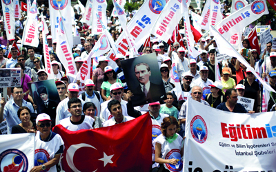 آلاف المتظاهرين في ساحة تقسيم بدعوة من نقابتين تركيتين