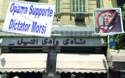 ملصق في أحد شوارع القاهرة ينتقد دعم أوباما لمرسي. رويترز