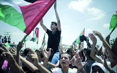 تظاهرة بالقرب من معبر بيت حانون (إيريز) بين قطاع غزة وإسرائيل في الذكرى الـ46 لاحتلال القدس. إي.بي.إيه