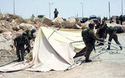 قوات الاحتلال تزيل خيام قرية كنعان الفلسطينية في الخليل. أ.ف.ب