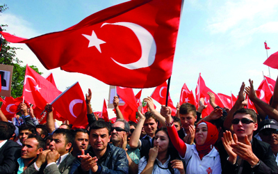 أنصار أردوغان بعد أن دعاهم لتلقين المتظاهرين درساً في الانتخابات. أ.ف.ب