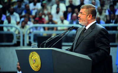 مرسي خلال إعلانه قطع العلاقات الدبلوماسية الذي وصفته دمشق بالتصرف «اللامسؤول». أ.ف.ب