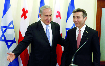 نتنياهو لدى استقباله رئيس الوزراء الجورجي. غيتي